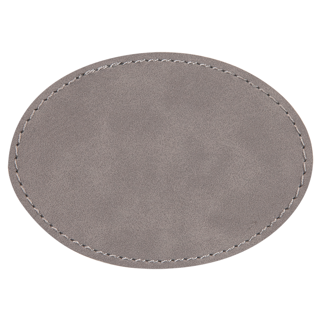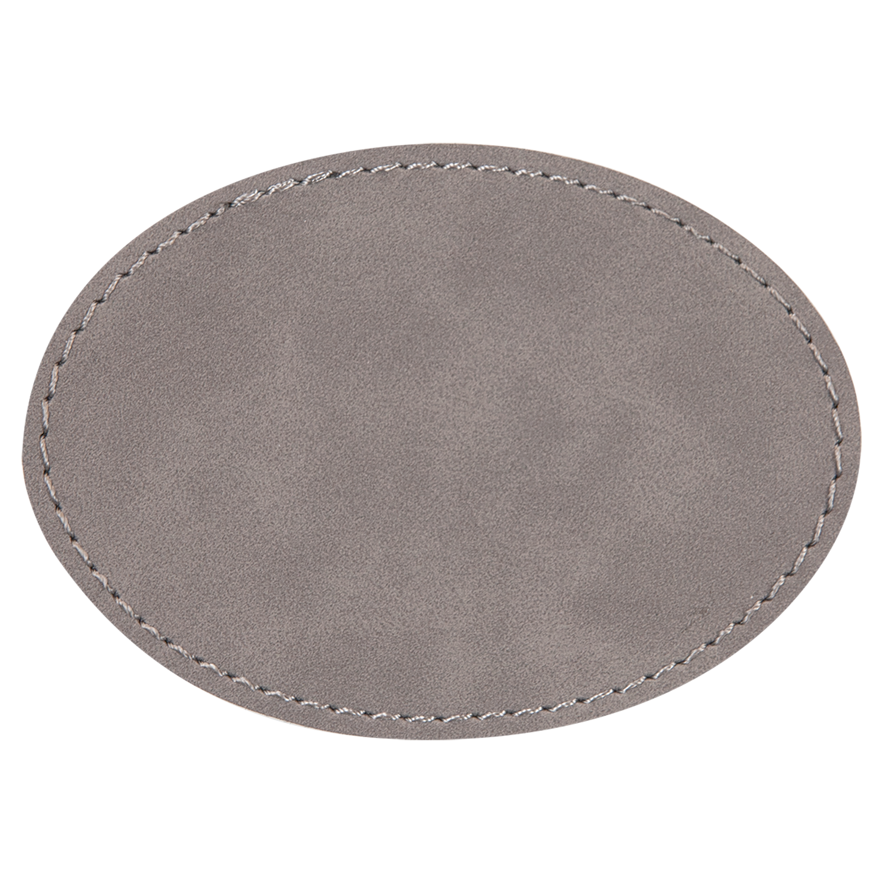 3 1/2" x 2 1/2" Oval Gray Leatherette Patch with Adhesive