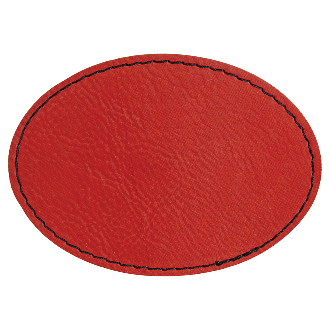 3 1/2" x 2 1/2" Oval Red Leatherette Patch with Adhesive